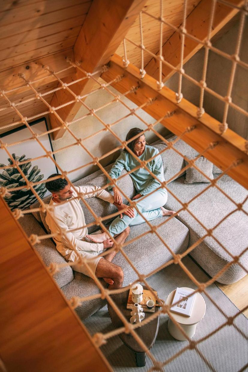 Domek z 2 sypialniami. Guests will have a special experience as this chalet provides a sauna and a fireplace. Featuring a private entrance, this air-conditioned chalet comprises 1 living room, 2 separate bedrooms and 1 bathroom with a walk-in shower and a bath. Guests will find a stovetop, a refrigerator, a dishwasher and kitchenware in the well-fitted kitchen. The chalet also provides guests with a barbecue. This chalet features soundproof walls, a tea and coffee maker, a flat-screen TV with streaming services and a terrace. The unit offers 4 beds. Domek - 4 osobowy. Powierzchnia pokoju ok.: 56 mkw.
