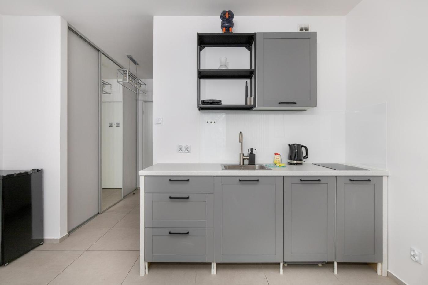 Studio. Offering free toiletries, this studio includes a private bathroom with a bath, a shower and a hairdryer. Guests can make meals in the kitchenette that is fitted with a stovetop, a refrigerator, a dishwasher and kitchenware. The studio offers a washing machine, a private entrance, a tea and coffee maker, a seating area, as well as a flat-screen TV. The unit offers 2 beds. Studio - 4 osobowy. Powierzchnia pokoju ok.: 34 mkw.