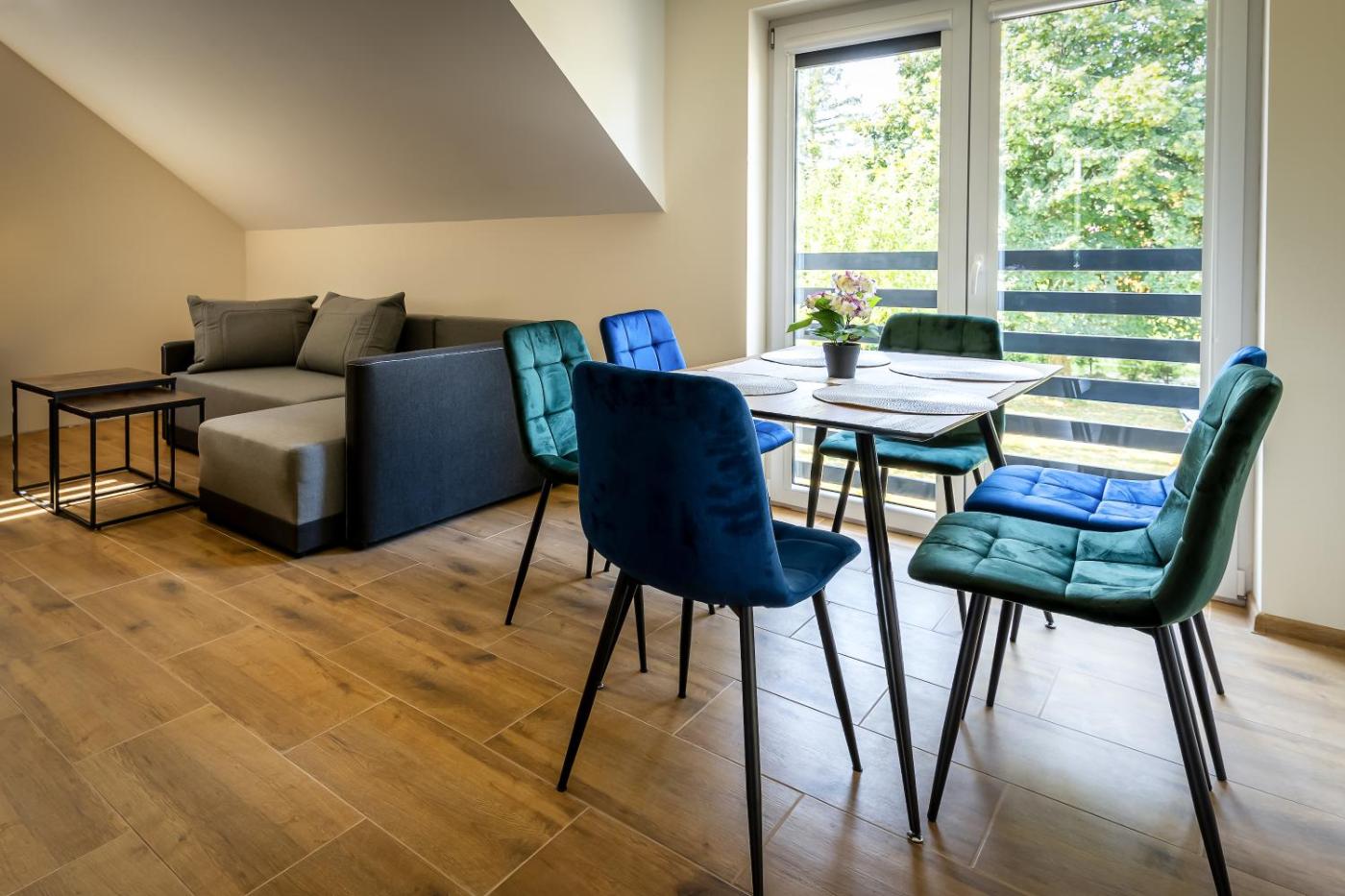 Apartament Rodzinny z 1 sypialnią. Featuring a private entrance, this air-conditioned apartment is comprised of 1 living room, 1 separate bedroom and 1 bathroom with a walk-in shower and a hairdryer. Guests will find a stovetop, a refrigerator, kitchenware and an electric kettle in the well-fitted kitchenette. The apartment also has a barbecue. The apartment offers a flat-screen TV, a wardrobe, parquet floors, a tiled floor as well as garden views. The unit offers 3 beds. Apartament - 4 osobowy. Powierzchnia pokoju ok.: 28 mkw. ;