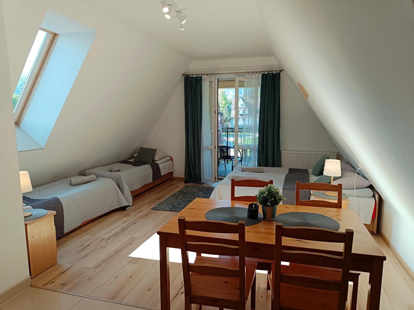 Pokój Czteroosobowy z balkonem. The quadruple room provides a wardrobe, an electric kettle, a balcony with garden views as well as a private bathroom featuring a shower. The unit offers 4 beds. Pokój Czteroosobowy - 4 osobowy. Powierzchnia pokoju ok.: 20 mkw. ;